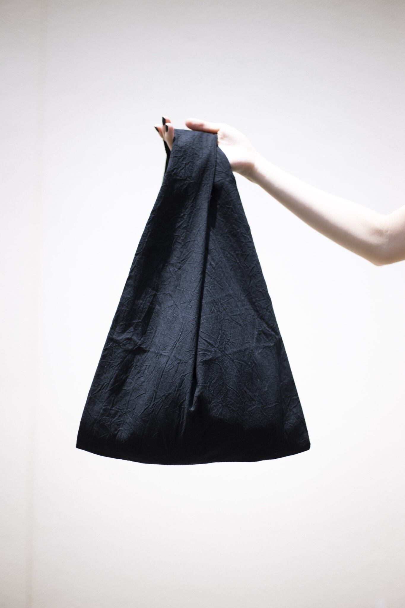 トートバック エコバッグ マルシェバッグ 黒 ブラック シンプル 麻 リネン